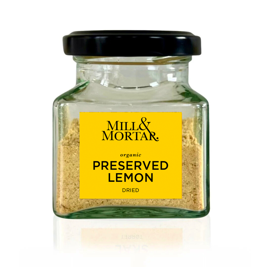 Deze gedroogde, korrelige en biologische ingemaakte citroenen van Mill&Mortar hebben een geconcentreerde smaak van citrus en umami om je gerechten meer diepte te geven. Door het zachte droogproces blijven de mooie smaak en kleur behouden, terwijl de houdbaarheid aanzienlijk wordt verlengd. Daarenboven is het makkelijker te doseren.